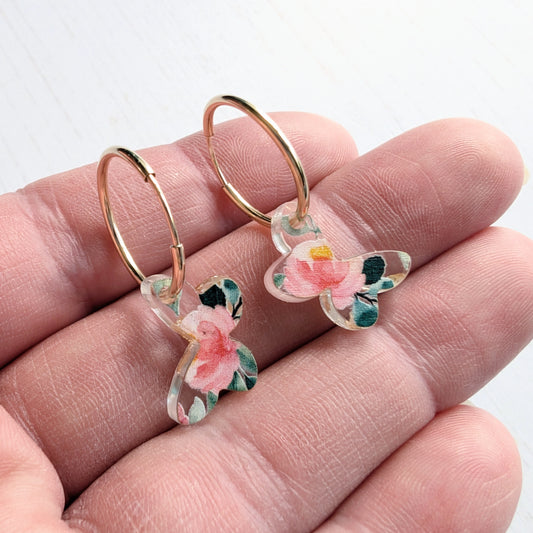Butterfly Yellow Gold Fill Hoops