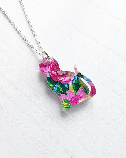 Cat Pendant - Pink Roses