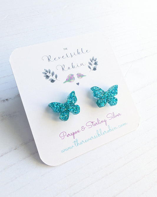 Butterfly Studs Turquoise Glitter