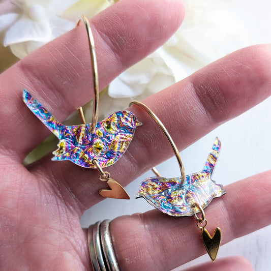 Yellow Gold Dichrolam Wren Hoop Earrings