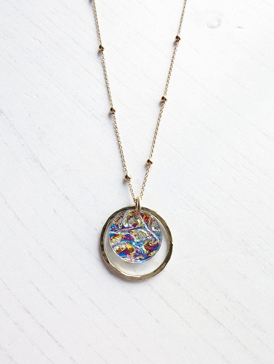 Yellow Gold Vermeil Dichrolam hammered Circle pendant