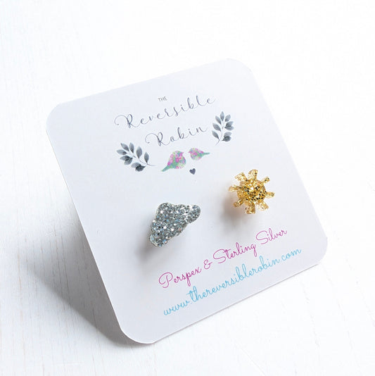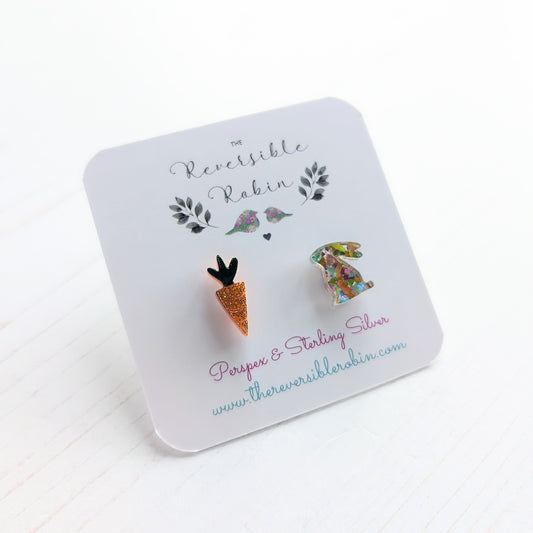 Lop Bunny & Carrot Studs, Rainbow Shatter