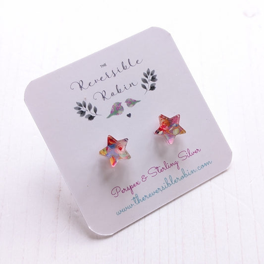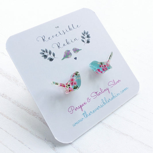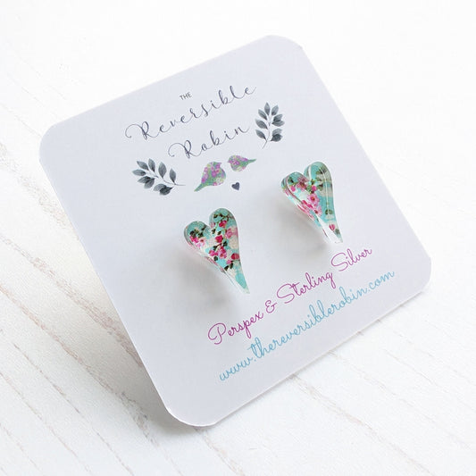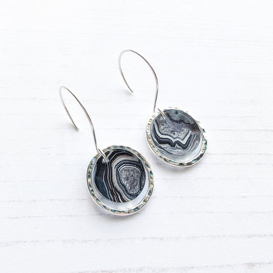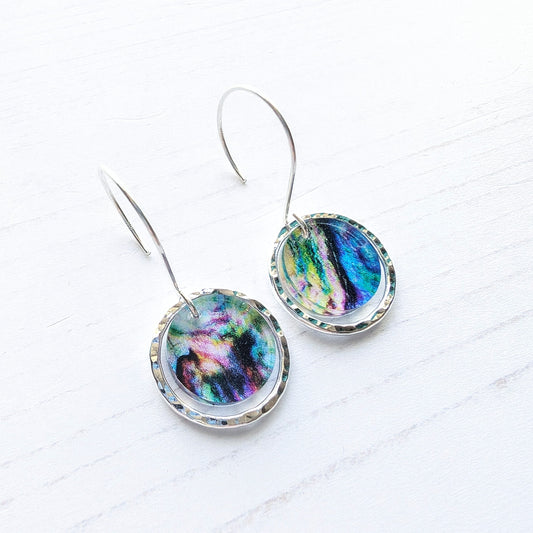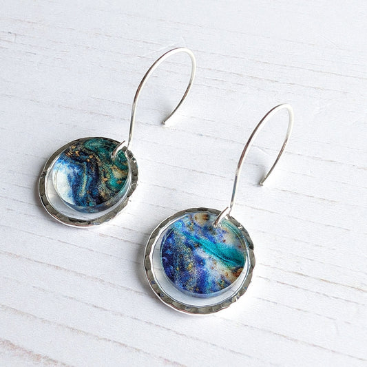 Hammered Sterling Silver circle earrings Natural Turquoise print