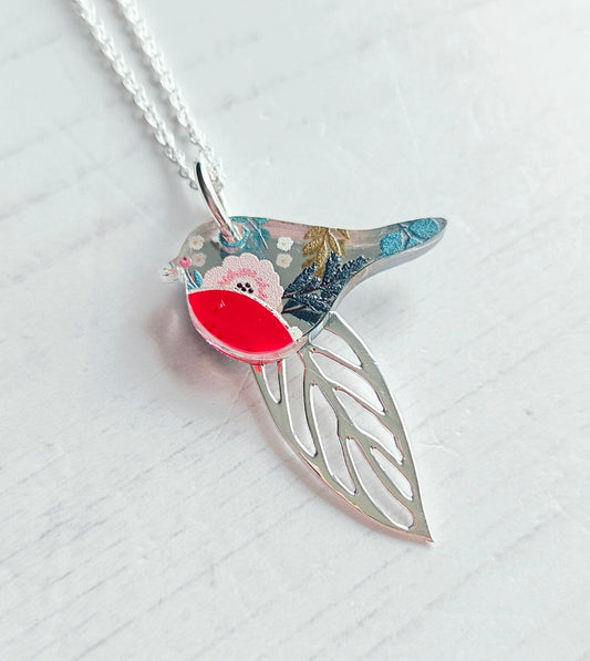 Robin & Leaf Pendant, Limited Edition Champagne Shimmer