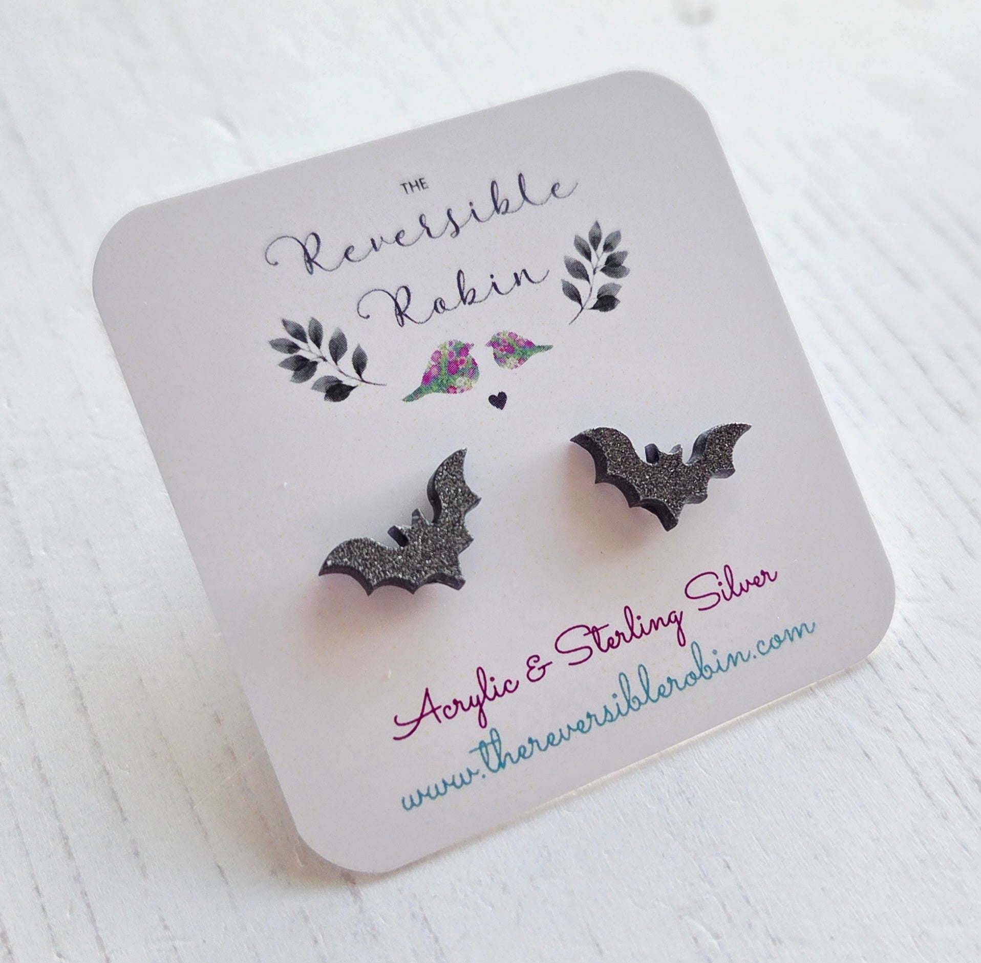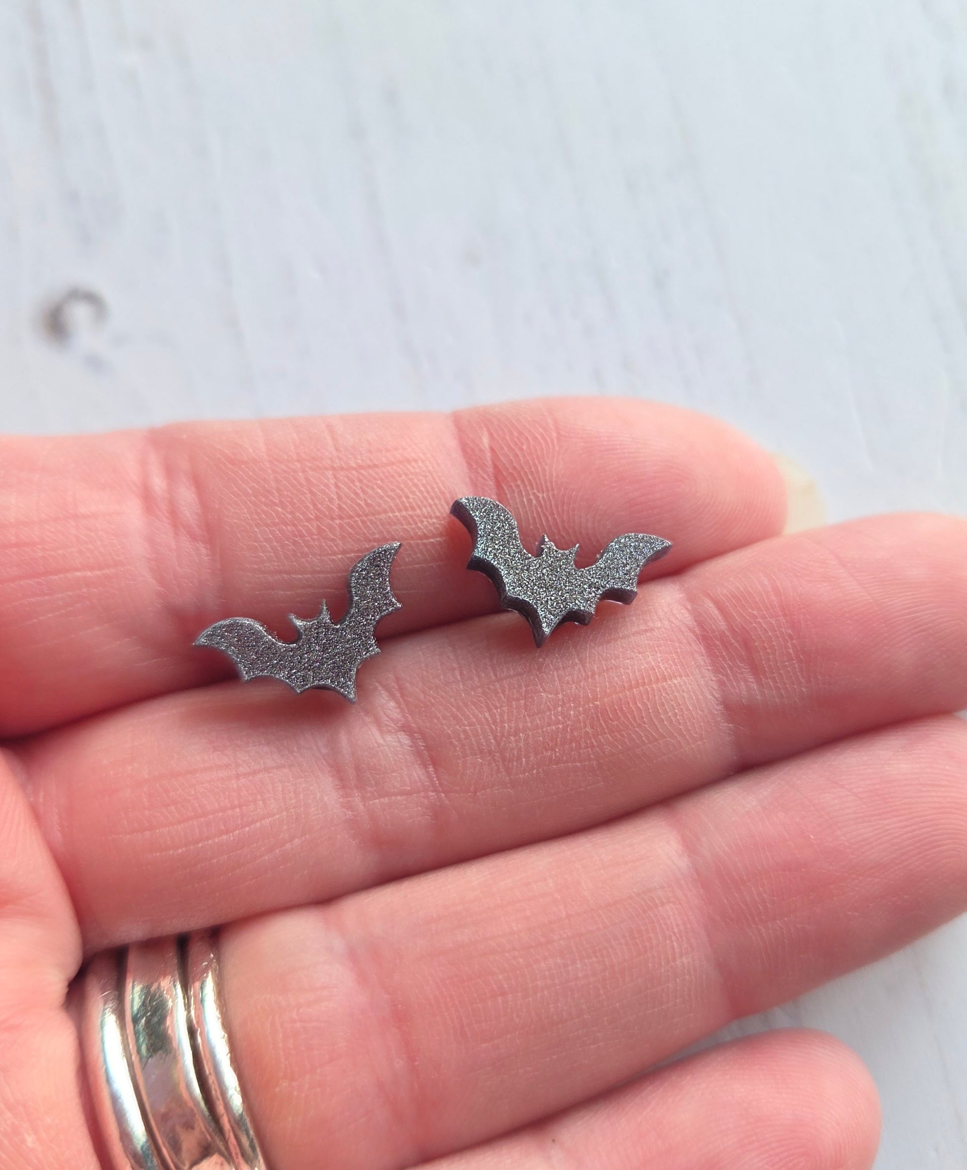 Black or Pewter shimmer acrylic bat studs on sterling silver posts