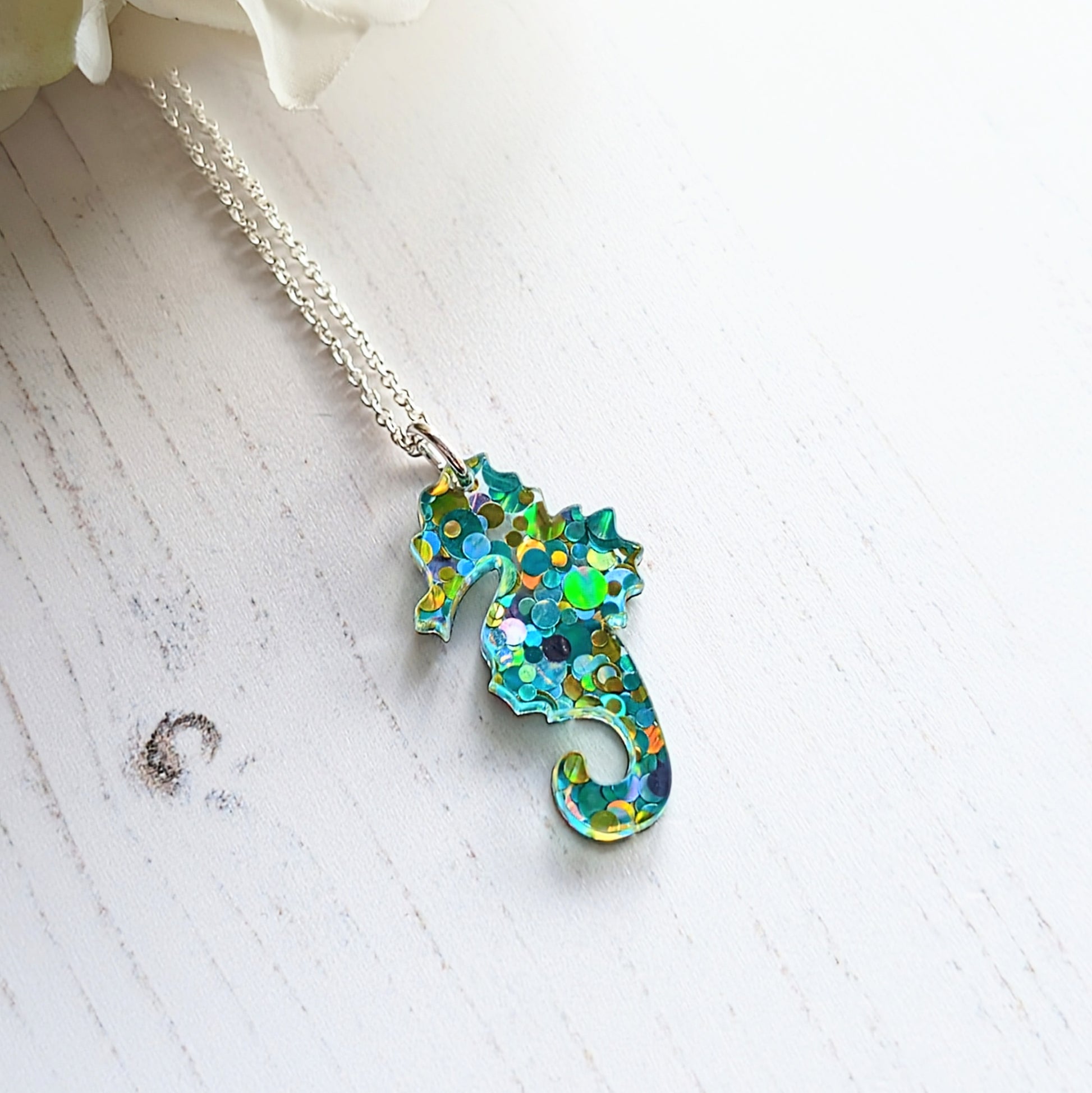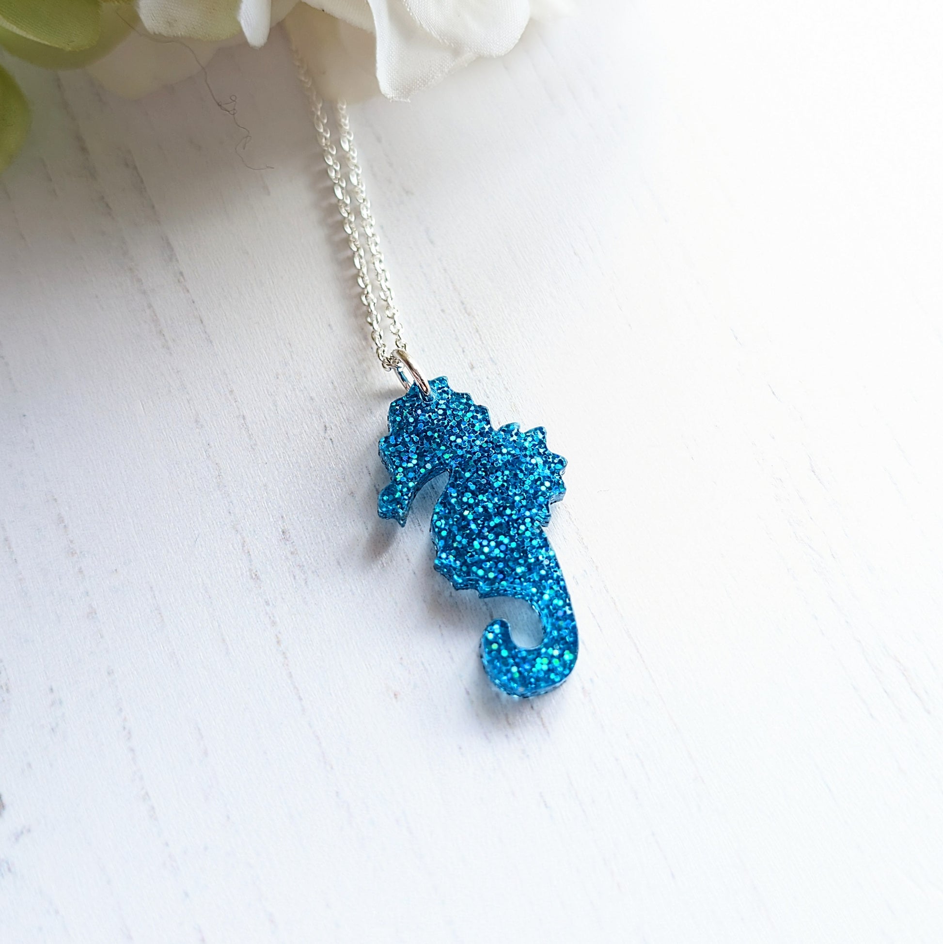 Cute little sparkly seahorse pendant on an 18" Sterling Silver Chain